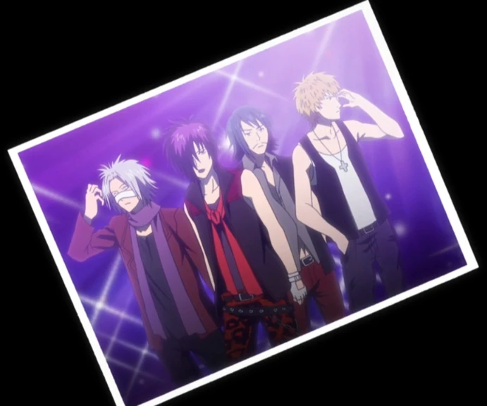 JardiN (ジャルダン) is a visual kei band which appears to be pretty popular among the students of Kaimei High School. They won first place in the Kaimei Rock Festival, where (in the anime) they performed the song Iki toshi ikeru subete ni tsugu.